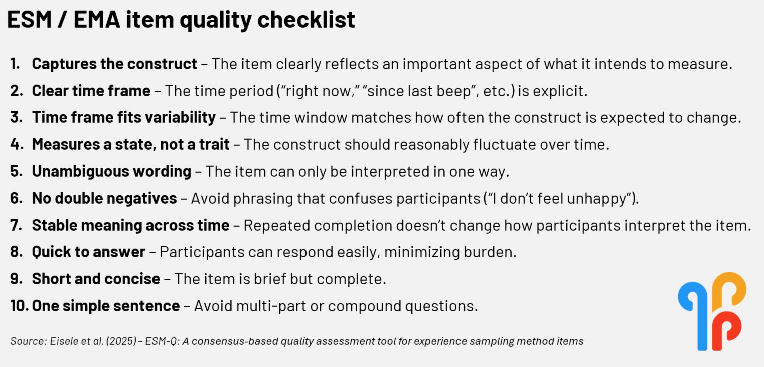 For the first time, researchers have a common language to discuss how good an ESM / EMA question is. The checklist can help you design appropriate items.
